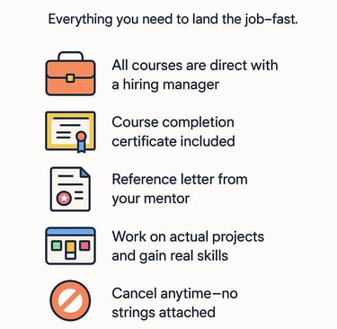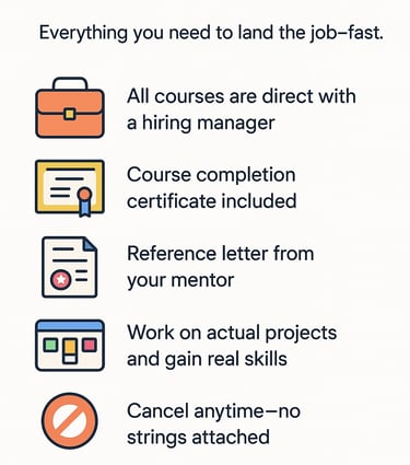 📚 We don't do boring, generic courses or certifications. Our programs are job-specific and taught by actual hiring managers in their industries. You'll get a legit taste of what it's like to work in a specific job within an organization. It's like a job simulation, but cooler! 🚀